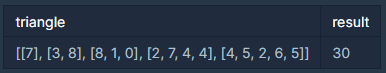 삼각형의 정보가 담긴 배열 triangle이 매개변수로 주어질 때, 거쳐간 숫자의 최댓값을 return 하도록 solution 함수를 완성하세요.
