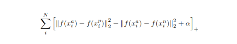 - 위의 식에서 앞의 항은 같은 사람의 두 이미지에 대한 임베딩의 거리를 구한 것이며, 뒤의 항은 다른 두 사람의 이미지의 임베딩의 거리를 구한 것이다.