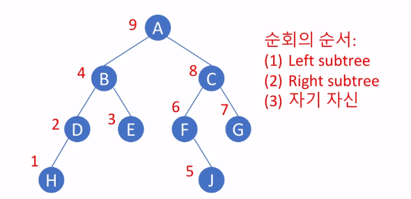 ㄴ 후위 순회 (post-order traversal)