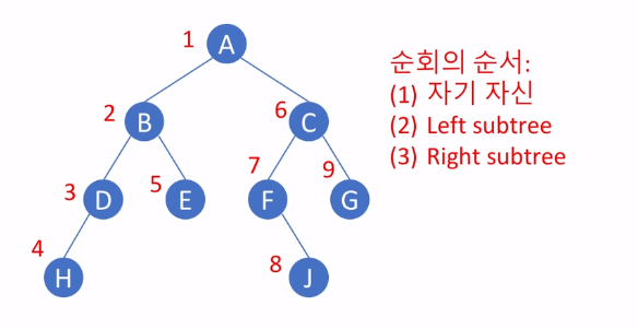 ㄴ 전위 순회 (pre-order traversal)