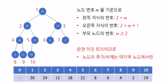 이진 트리의 한 종류 (이진 힙 - binary heap)