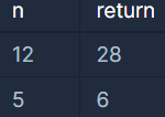 정수 n을 입력받아 n의 약수를 모두 더한 값을 리턴하는 함수, solution을 완성해주세요. 제한 사항 n은 0 이상 3000이하인 정수입니다. 입출력 예 n return 12 28 5 6 입출력 예 설명 입출력 예 #1 12의 약수