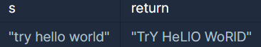 "try hello world"는 세 단어 "try", "hello", "world"로 구성되어 있습니다. 각 단어의 짝수번째 문자를 대문자로, 홀수번째 문자를 소문자로 바꾸면 "TrY", "HeLlO", "WoRlD"입니다. 따라서 "TrY HeLlO WoRlD" 를 리턴합니다.