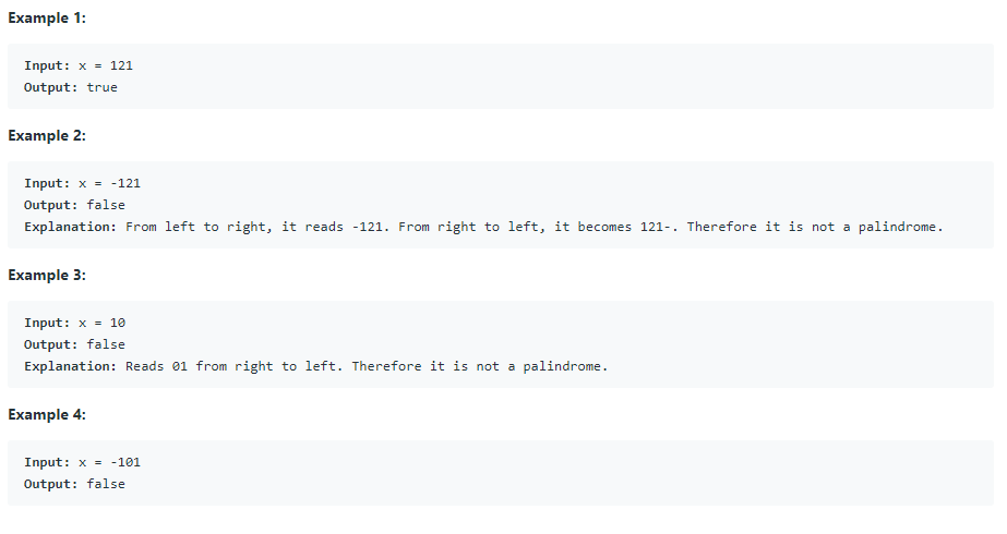An integer is a palindrome when it reads the same backward as forward. For example, 121 is palindrome while 123 is not.