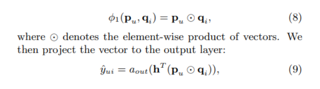 - 따라서, 활성화함수 aout에 non-linear function을 사용하거나 h를 학습된 값을 사용하게 된다면 더 다양한 MF의 버전을 나타낼 수 있을 것이다. 이것이 바로 GMF 이다.