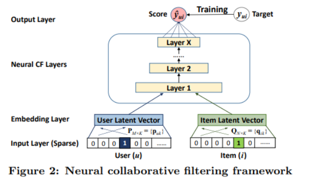 - Input layer에는 user u 와 item i를 one-hot encoding한 벡터가 들어간다.