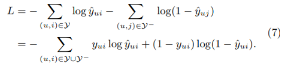 - 예상했을 수도 있지만, 해당 Loss는 Binary cross-entropy loss (=log loss)와 동일하다. 즉, NCF에 확률적 접근을 취함으로써 추천시스템 문제를 이진 분류 문제로 전환시켰다.